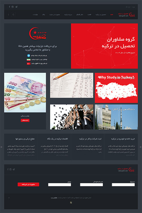 وب سایت Go2tr برای موسسه اعزام دانشجو به ترکیه، مهاجرت، اقامت و گرفتن ویزای تحصیلی به مدیریت رضا نصرتی که نمایندگی موسسه ترکیه ای Pozza می باشد طراحی شده است. اطلاعات کامل برای دانشجویان، فروم گفتگو، معرفی دانشگاه و شرایط اقامت در ترکیه از جمله امکانات این وب سایت می باشد.