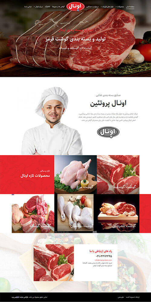شرکت اونال پروتیئن به عنوان یک شرکت پیشرو در زمینه بسته بندی مواد غذایی پروتئینی و گوشتی فعالیت دارد و توانسته طی سال های اخیر بازار شمالغرب کشور را پوشش دهد. هدف اصلی اونال پروتئین تامین مواد غذایی با کیفیت عالی برای مشتریان گرامی می باشد. این شرکت در زمینه گوشت قرمز و گوشت سفید فعالیت دارد.