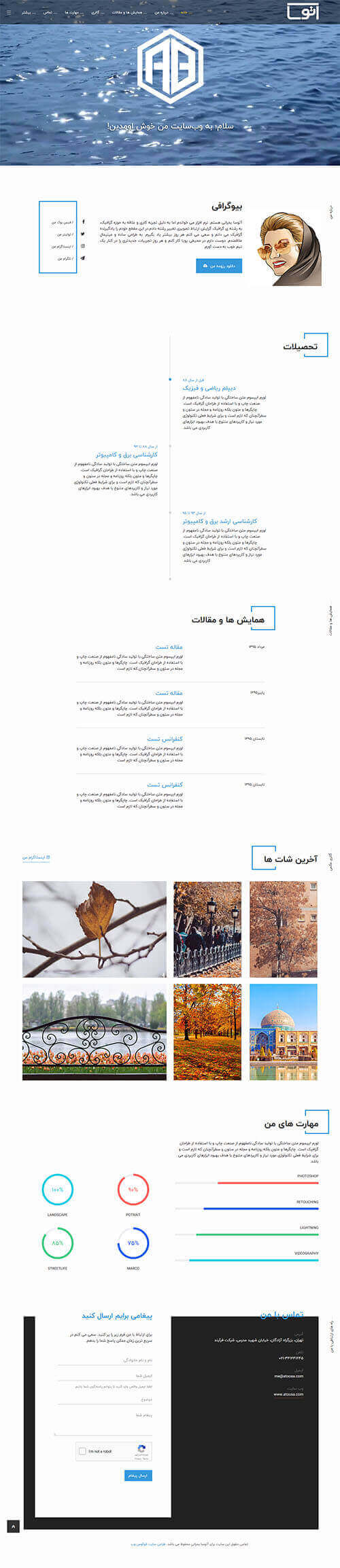 وب سایت شخصی مهندس آتوسا بحرانی، دانشآموختهی رشتهی مهندسی دریا، به منظور ارائه اطلاعات کلی ایشان از جمله، تحصیلات، رزومه کاری، مقالات و مهارت های تخصصی و گالری عکس طراحی و توسعه داده شده است.