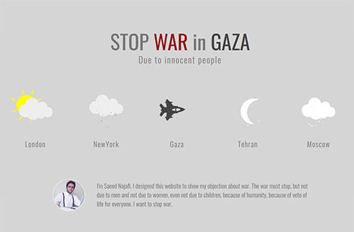 این وب سایت یک اثر هنری با طراحی سعید نجفی، مدیرعامل سازمند در اعتراض به جنگ در غزه و کشته شدن انسان های بی گناه است. در این وب سایت بیش از 140 هزار نفر احساس همدردی و اعتراض خود را امضا کرده اند.