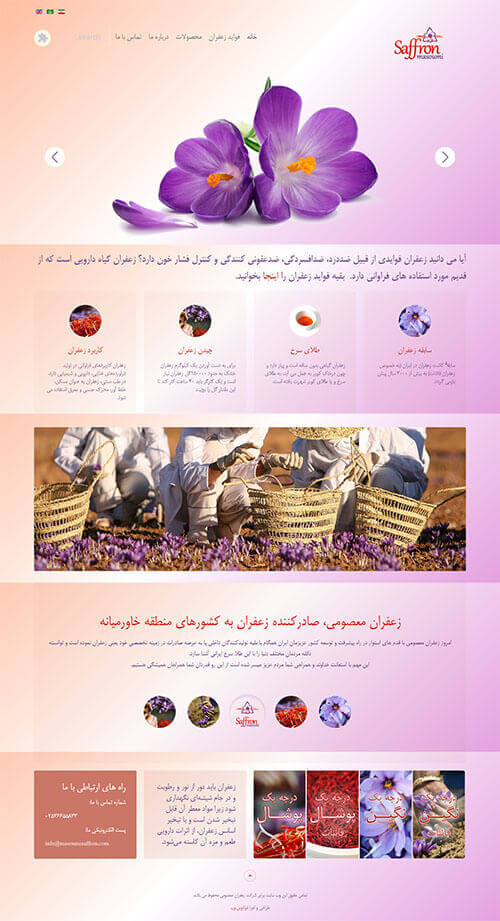 شرکت زعفران معصومی از جمله پیشروان صنعت زعفران کشور بوده که با سابقه ای چندین ساله به برندی شناخته شده در این صنعت تبدیل شده است. این شرکت علاوه بر تولید داخلی، اقدام به صادرات زعفران نیز به کشورهای خاورمیانه، آسیایی و اروپایی نیز کرده و توانسته ذائقه مردمان مختلف دنیا را با این طلا سرخ ایرانی آشنا سازد. وب سایت این شرکت به صورت 3 زبانه طراحی شده است.